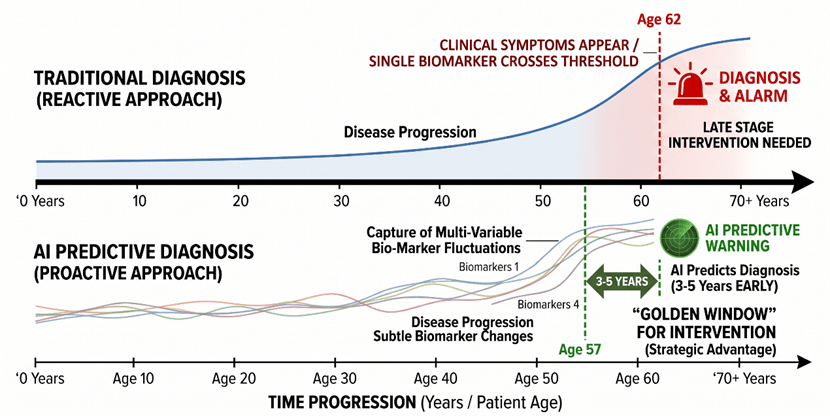 Figure 6: Timeline Comparison of Traditional vs. AI-Predictive Diagnostics and the “Golden Window” for Intervention.
